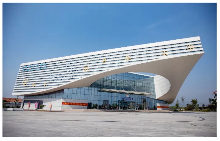1.設計理念:本工程外觀獨特,遠觀如同一只海龜游弋在海邊昂首挺胸面向太陽升起的東方,與“日出東方而先照”呼應;近看弧形的流暢形體似行云流水,水流躍起處形成簡潔寬敞的入口空間。入口上方設計的巨大圓形鏤空,以及角部抽柱的設計理念,使建筑物更加輕盈美觀。